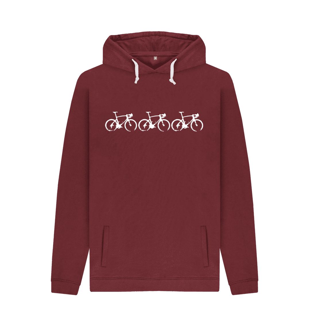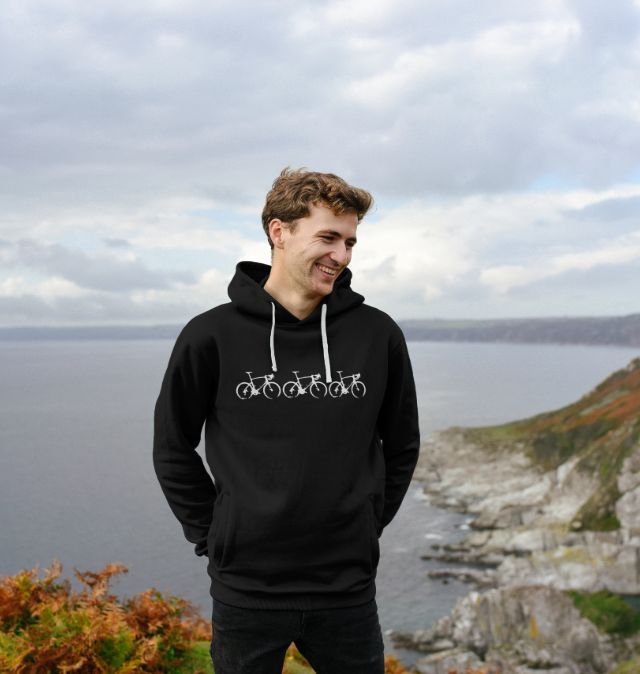 Printed on 100% organic cotton, these hoodies will keep you warm when you're off the bike.