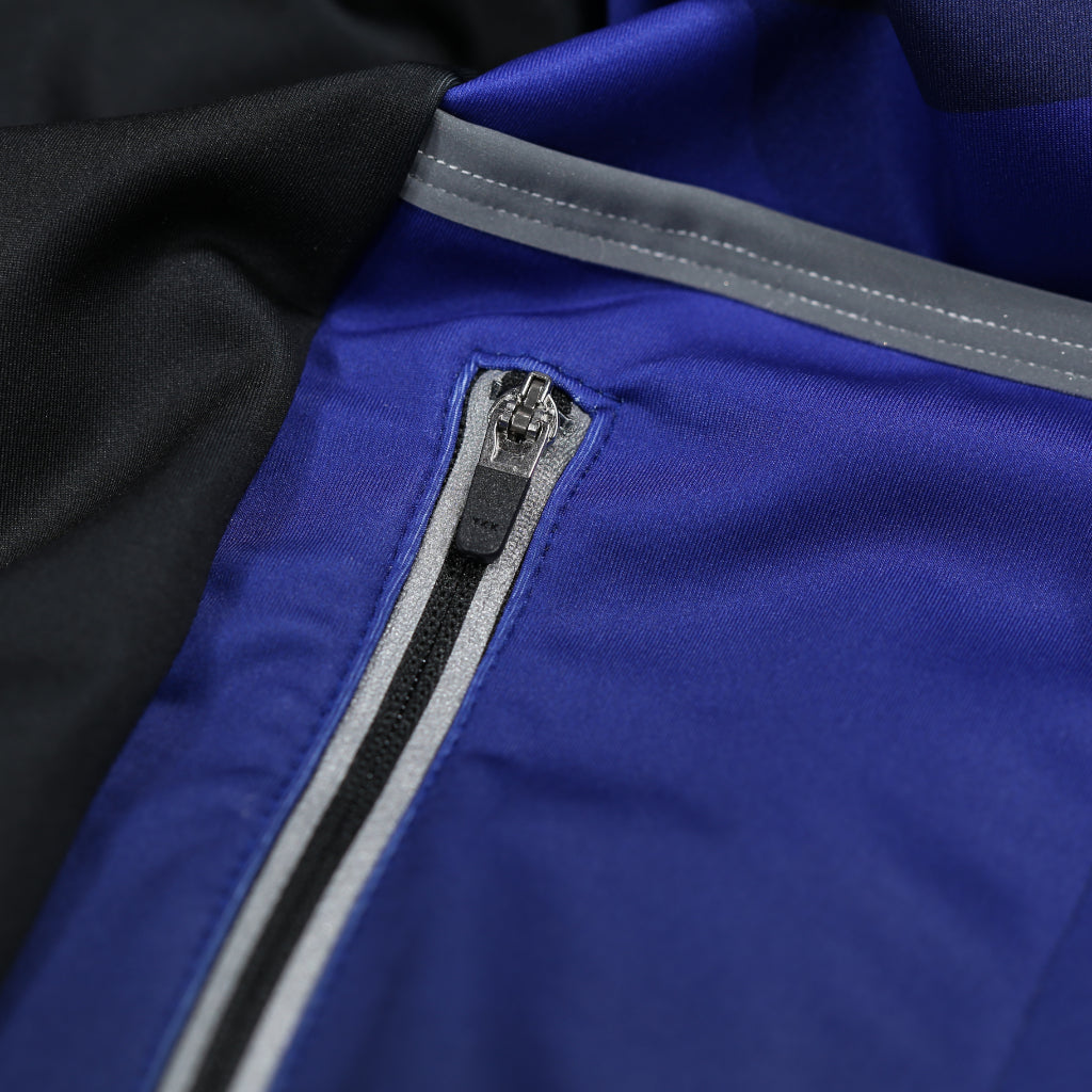 Inspired by the Italian waterproof race jerseys seen in the Pro peloton, the premium water repellent fabric keeps out wind and protects from rain showers.
