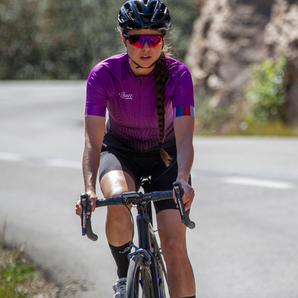 Shutt performance cycling jerseys are manufactured using Repetita® 100% post-consumer recycled yarns. Repetita® uses polyester regenerated from PET plastic found in landfill and the oceans.